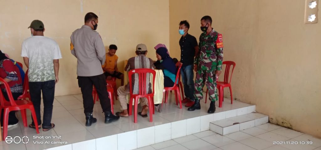 Nampak Bhabinkamtibmas dan Babinsa Desa Cakura, Kecamatan Polsel melaksanakan pendampingan petugas kesehatan dari Puskesmas dalam kegiatan penyuntikan Vaksin Covid-19 kepada warga masyarakat.