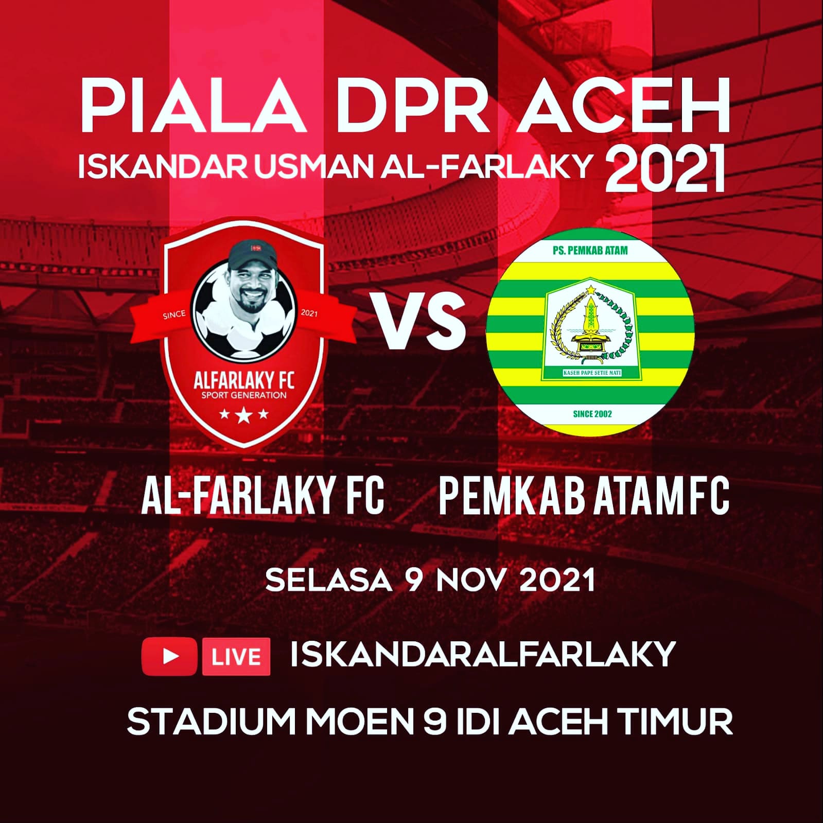 Open Turnamen Bola kaki Piala DPR Aceh Iskandar Usman Alfarlaky Tahun 2021 yang dilaksanakan di lapangan Mon sikeureung IDI Rayeuk Kabupaten Aceh Timur berjalan sukses dan sesuai Prokes Selasa 9/11/21