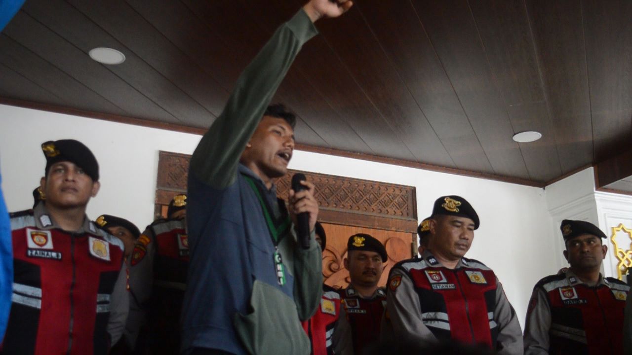 “Kita menolak Achmad Marzuki karena sudah mengangkangi dari pada UUPA (Undang-Undang Pemerintahan Aceh) dan MoU Helsinki (butir-butir perdamaian) sebagai mana tertulis dalam Qanun Aceh nomor 12 tahun 2016 pasal 24 poin B tertulis wajib Orang Aceh, Dan juga juga kita mendesak DPR Aceh mengembalikan marwah Aceh.” kata Raja.