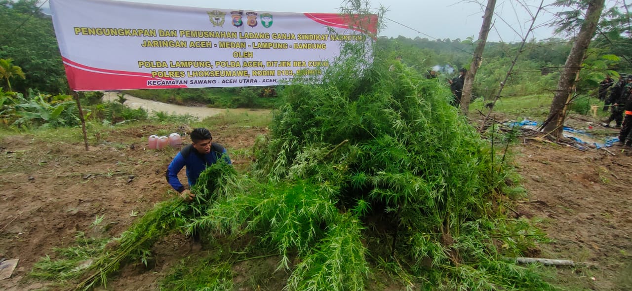 Kapolres Lhokseumawe AKBP Eko Hartanto, S.I.K, M.H melalui Kasi Humas Salman Alfarasi, S.H, M.M mengatakan, ladang Ganja yang dimusnahkan seluas 6,28 hektar dengan cara mencabut dan langsung dibakar ditempat.