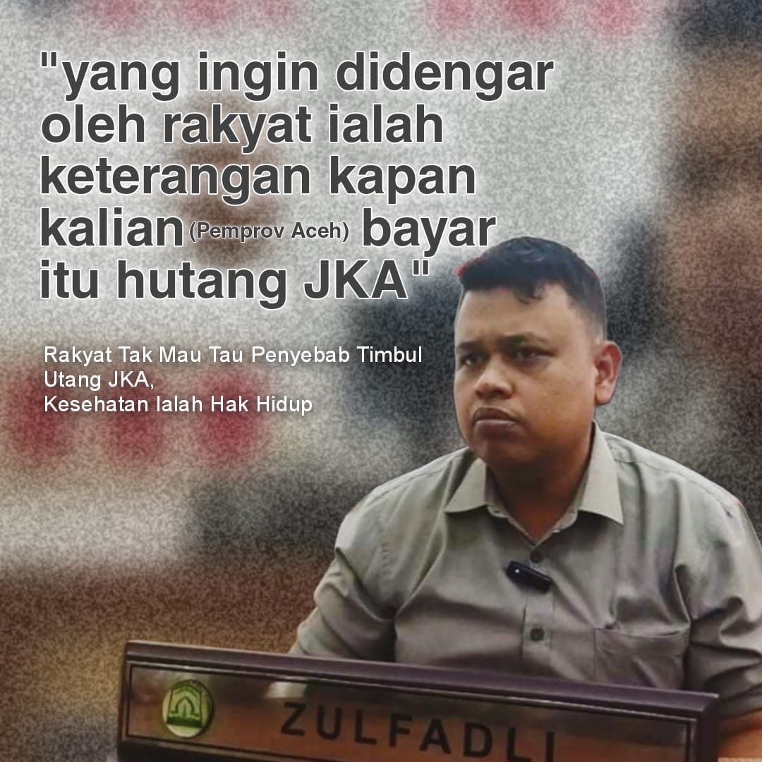 “yang ingin didengar oleh rakyat ialah keterangan kapan kalian (pemprov aceh) bayar itu hutang JKA” Pungkas Oyong
