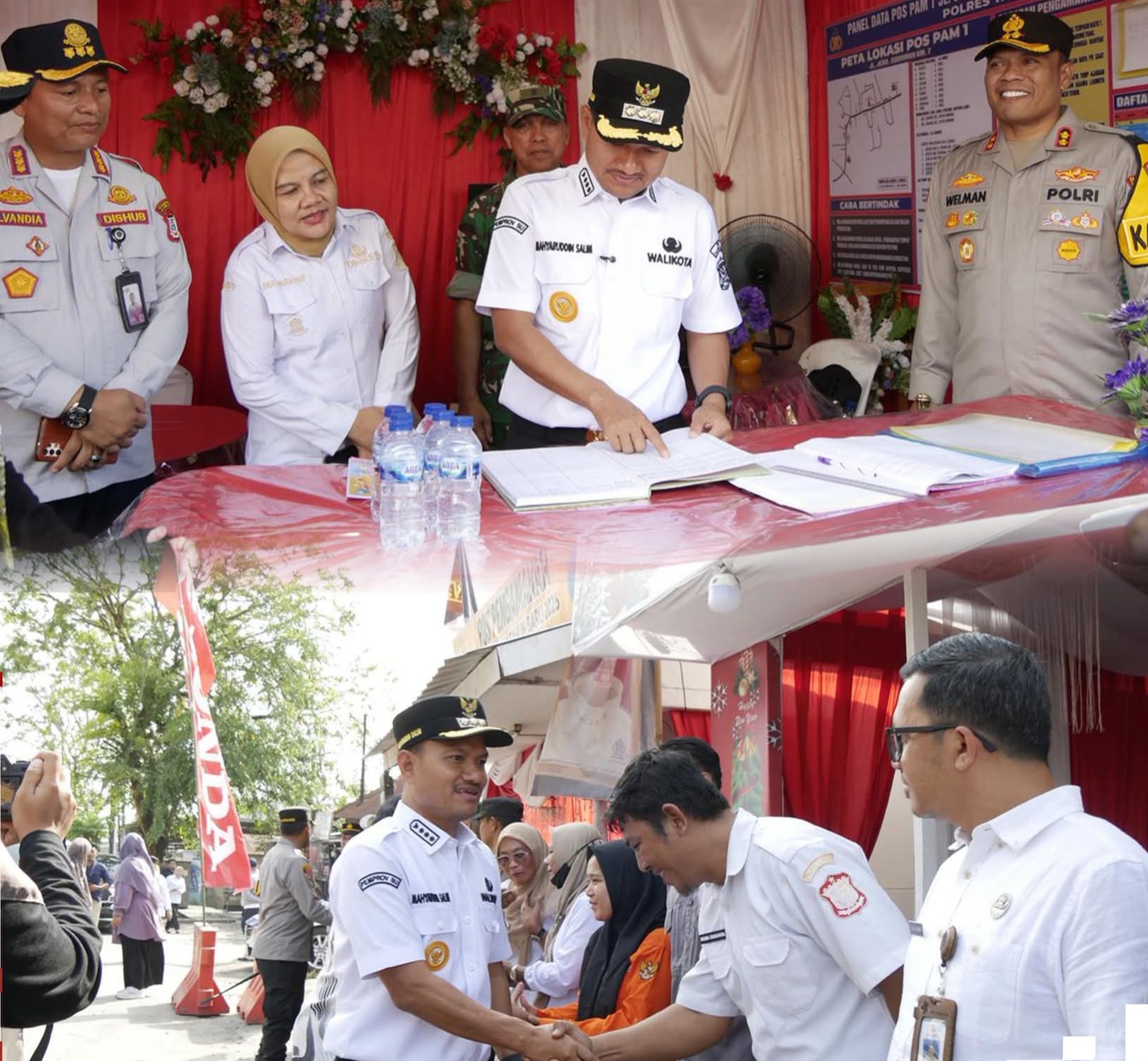 sriwijayatoday.com- Wali Kota Tanjungbalai, Mahyaruddin Salim didampingi Ketua TP-PKK Mashandayani Mahyaruddin bersama Forkopimda melaksanakan peninjauan pos pengamanan dan pos pelayanan dalam rangka kesiapan perayaan natal tahun 2025 dan tahun baru 2026 (Nataru). Wali Kota bergerak dari titik kumpul di halaman Mapolres Kota Tanjungbalai menuju 3 (tiga) Pos yang telah dipersiapkan di Wilayah Kota Tanjungbalai, Rabu (24/12/2025)