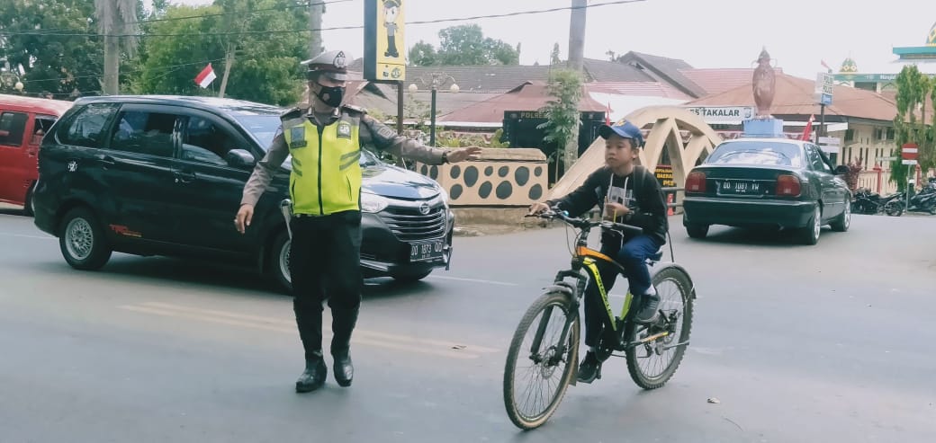 Selain melaksanakan pengaturan arus lalu lintas, anggota lalu lintas membantu pelajar saat menyeberang jalan dan juga memberikan teguran lisan kepada pengendara yang melakukan pelanggaran.