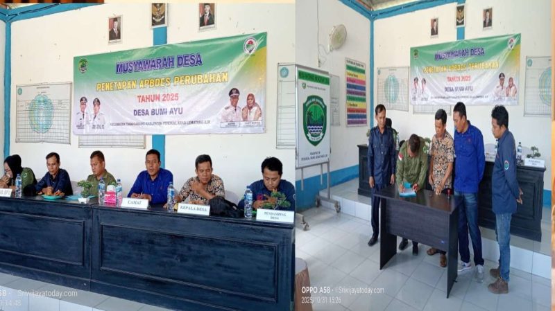 Sriwijayatoday.com, PALI – Badan Permusyawaratan Desa (BPD) bersama Pemerintah Desa Bumi Ayu, Kecamatan Tanah Abang, Kabupaten Penukal Abab Lematang Ilir (PALI), menggelar Musyawarah Desa Penetapan Anggaran Pendapatan dan Belanja Desa (APBDes) Perubahan Tahun 2025, Jumat (31/10/2025).